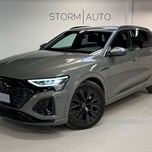 Rigtig flot sammensat modelår 2024 Audi Q8 e-tron S-Line i Chronos grå metallak med sorte 21” Audi RS fælge.