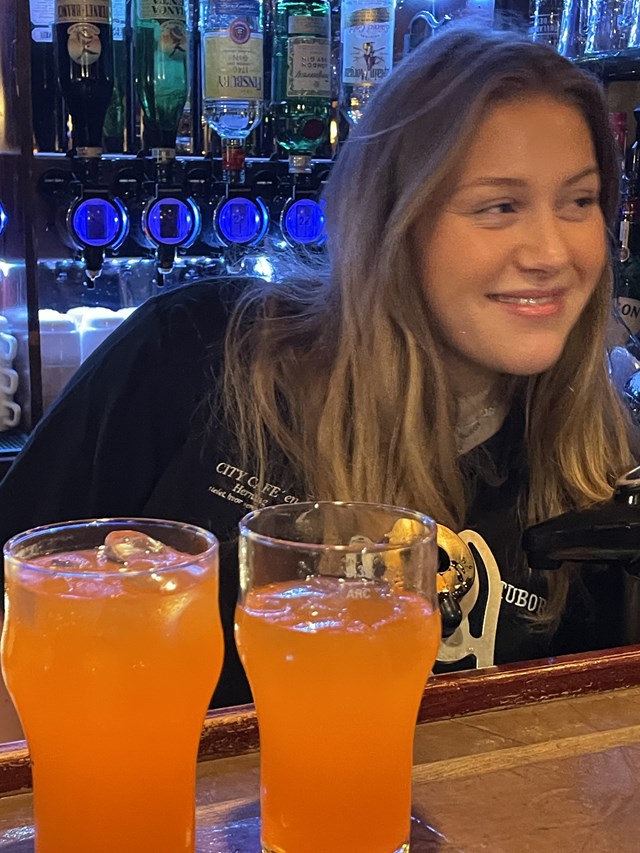 Kristian er bakket op af et team af dedikerede bartendere; Emmalie, Mathilde og Kasper, som hver især bidrager til stemningen og servicen i City Caféen.