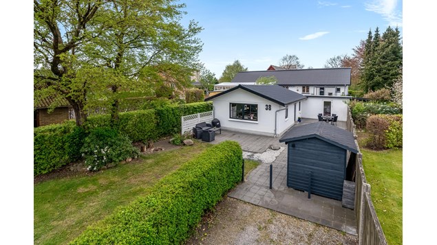 Udendørsområderne imponerer ligeledes med gode store terrasser ideelle til afslapning eller sociale sammenkomster. Grunden ligger trukket tilbage fra vejen og byder på en dejlig have samt ugenerte hyggekroge – perfekte til stille stunder i naturen.