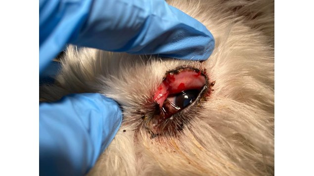 Lille Penny her, var en af de mange akut patienter vores vagt team Anne og Karina havde inde idag 🚑 Penny var så uheldig at blive bidt ved øjet 👁️ Vores øjendyrlæge Anne fik syet Penny fint samme...