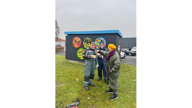 I dag er der 3,5 uge til vi åbner by Dolphin og Dolphin Garage. Og hver dag går det fremad. I dag startede Jørgen Pedersen og hans kære hustru Inger Abildstrup med den udvendige udsmykning og vi er fortsat helt høje. Glæd jer Dolphin Street bliver en oplevelse for alle sanser