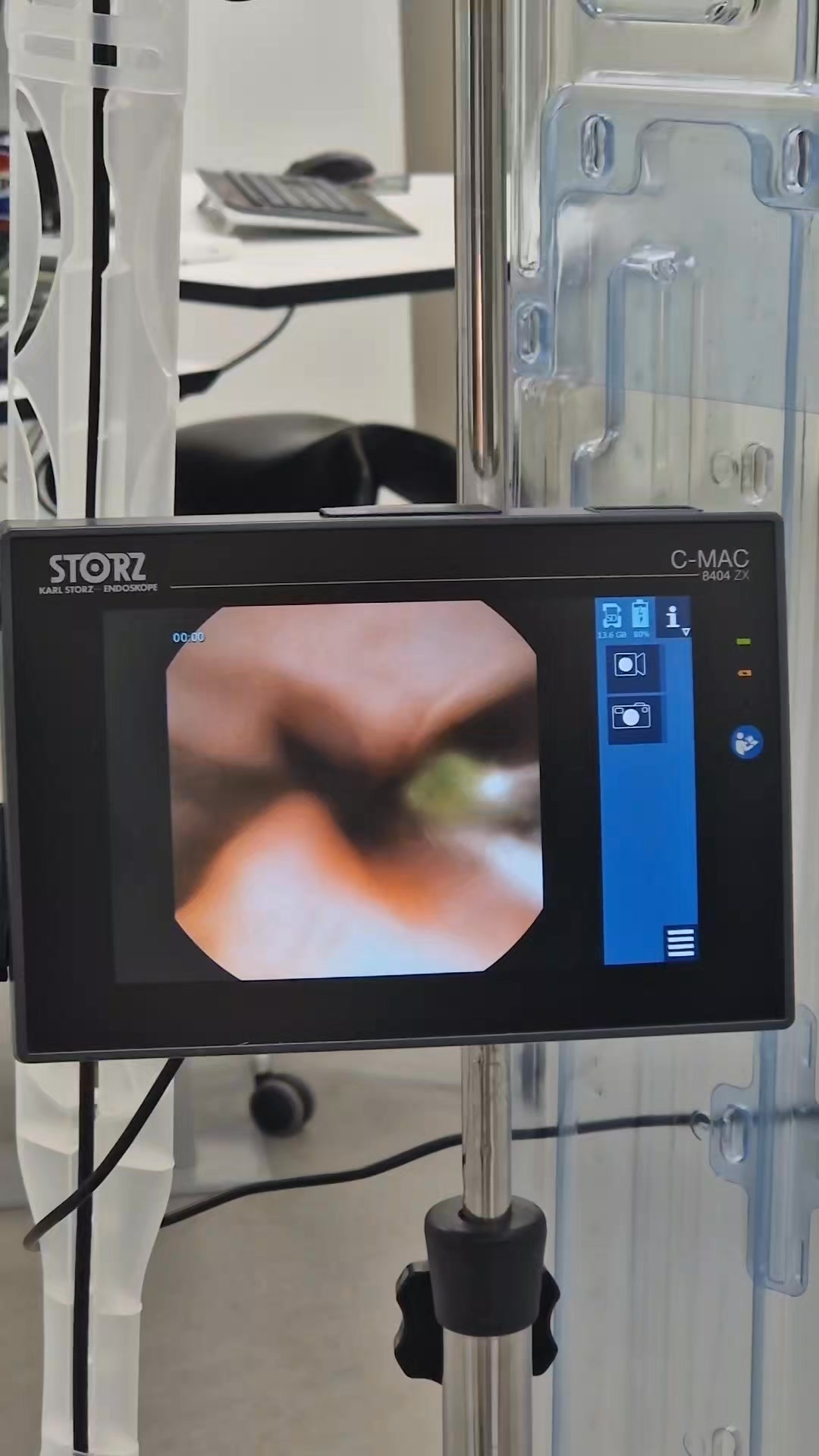 Ved en grundig undersøgelse af Fido, fik vi en mistanke om at der sad noget i næsen der irriterede Fido. Vi brugte derfor vores lille videoskop, for at kunne undersøge næse og svælg grundigt, og her kunne vi se det! Et langt græsstrå havde sat sig fast mod slimhinden dybt i næsen!