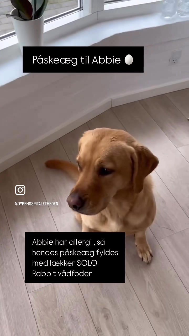 Abbie har allergi, så “ægget” er fyldt op med lækker SOLO rabbit vådfoder