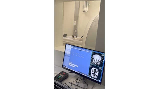 Når vi laver en CT- scanning skal patienten ligge helt stille, så undersøgelsen foregår altid i fuld narkose .
