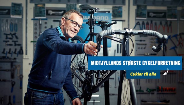 Denne cykelforretning, Midtjyllands største, har et imponerende sortiment af cykler og tilbehør til hele familien.