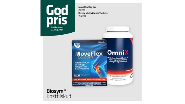 God pris på Biosym kosttilskud: Moveflex kapsler og Omnix multivitamin tabletter nu tilgængelige på apoteket og online