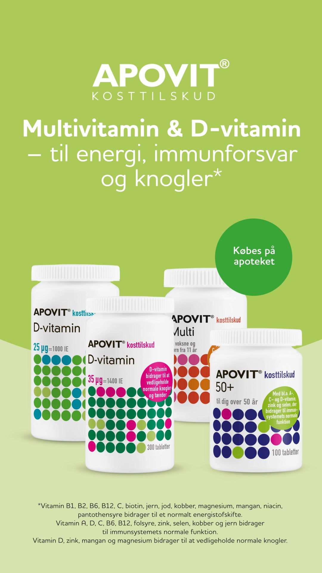 Multivitamin og D-vitamin fra Apovit - købes på dit lokale apotek eller på Apoteket-online.dk