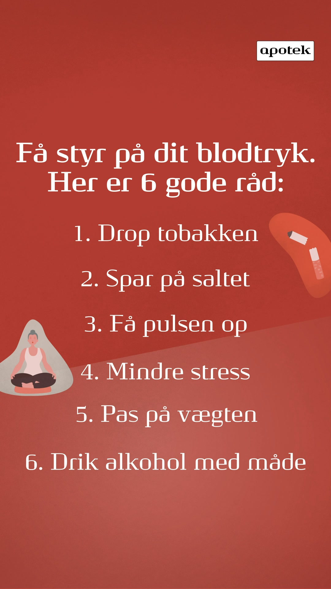 Apotekets 6 gode råd til at få styr på dit blodtryk, hvis du døjer med et forhøjet blodtryk eller gerne vil forebygge selvsamme!