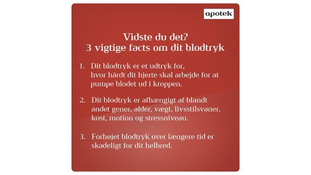Heldigvis er der meget, du selv kan gøre for at holde trykket nede, så du kan holde længere. Det kan du se mere om på https://www.apoteket.dk/blodtryk