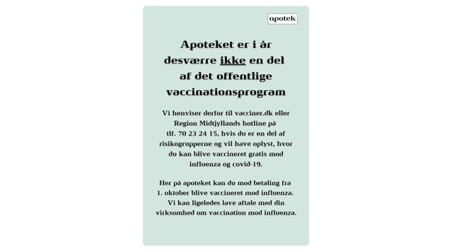 ️ DU KAN IKKE BLIVE VACCINERET GRATIS PÅ APOTEKET I ÅR ️