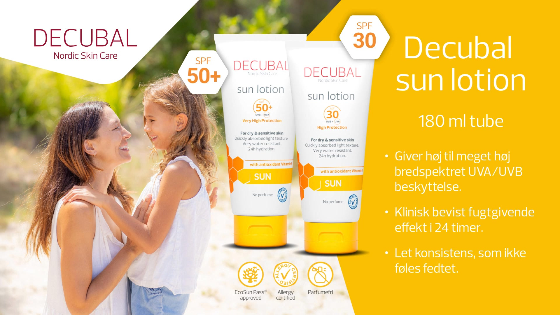 Decubal Sun Spray og Lotion tilbyder en høj, bredspektret beskyttelse mod solens skadelige stråler og en øjeblikkelig og langvarig fugtgivende effekt!