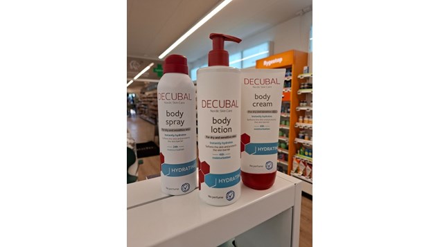 På hylderne på dit lokale apotek finder du nu en ny body cream, en body spray og en bodylotion fra Decubal - alle til tør og sensitiv hud