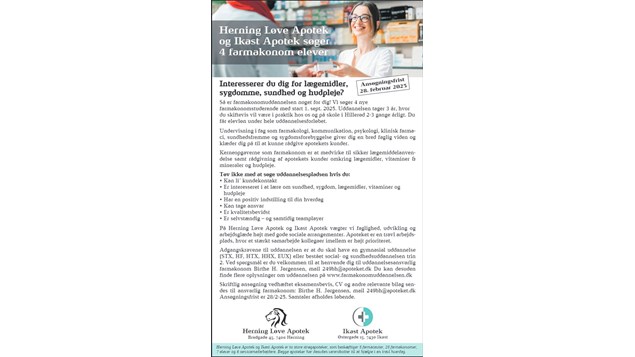 Bliv farmakonom-elev hos Herning Løve Apotek og Ikast Apotek!