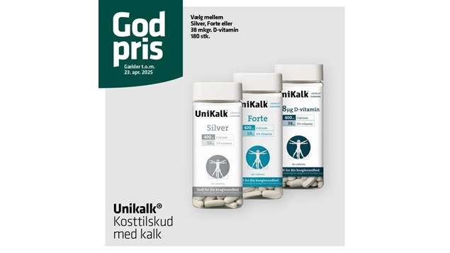 Gør noget godt for din knoglesundhed og find et kosttilskud indeholdende kalk. Unikalk kosttilskud indeholder udover calcium også D-vitamin, der bidrager til en normal optagelse af kalk i kroppen!