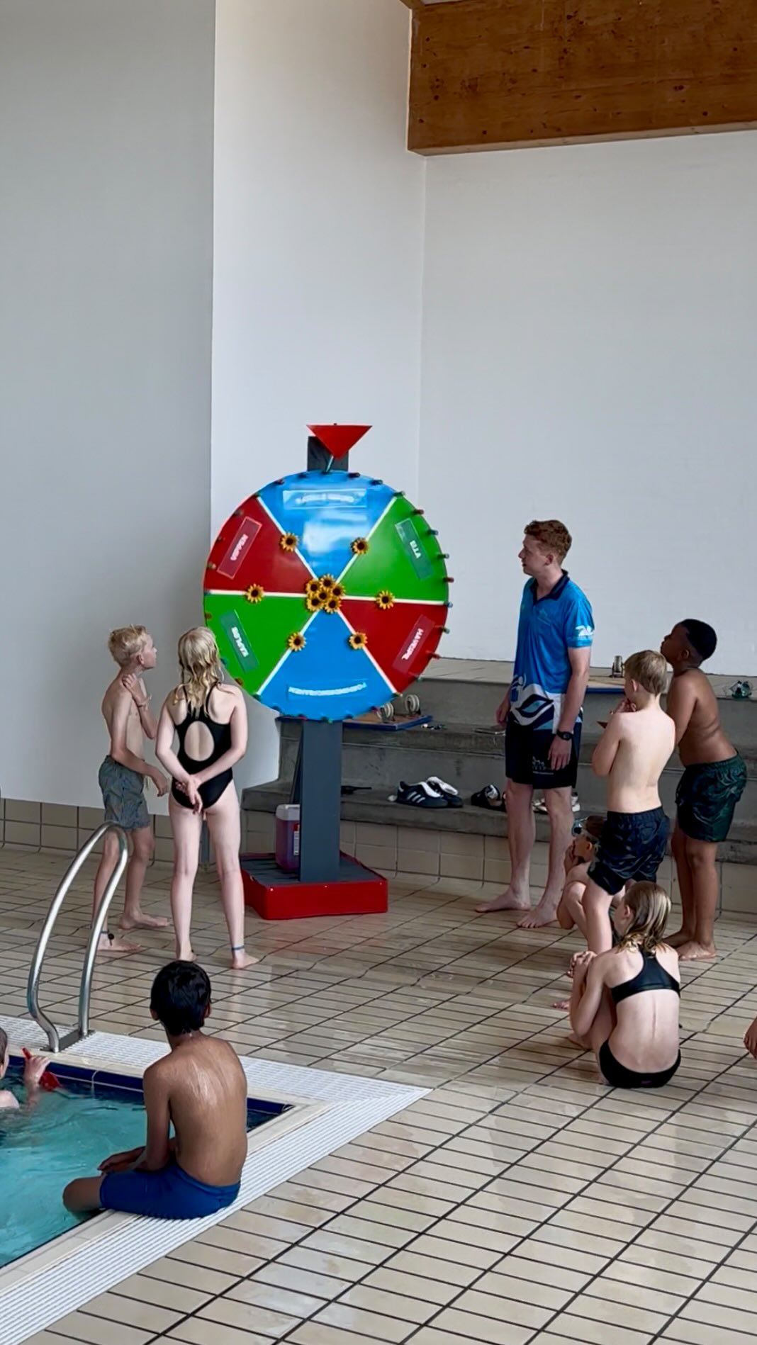 Badeværterne vil i ny og næ komme rundt og samle konkurrencevillige børn og voksne ind til et af hjulets konkurrencer!