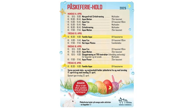 Det fulde påskeferieprogram finder du her: https://herningbad.dk/nyheder/program-paasken-2025 - Vil du have den fysiske flyer, ligger de nu klar på disken i receptionen