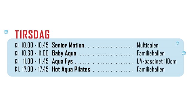 Herning Svømmehal: Oversigt over tirsdagens baby- og motionshold