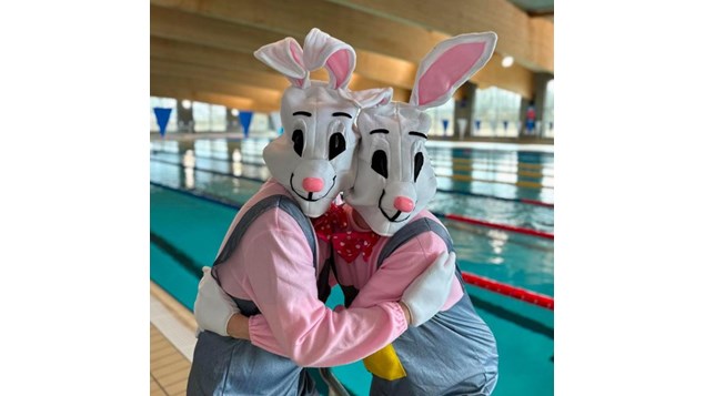 Herning svømmehals doveneste medarbejdere: Påskeharerne Stampe og Pjuske skaber fest og farver