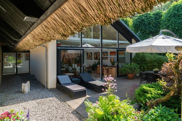 Udendørs faciliteter inkluderer en charmerende garagebygning og et imponerende atelier tilføjet i 2011, der er designet med fokus på lys og luft. Den store grund på 5.103 kvadratmeter er omgivet af et dyrehegn og tilbyder et næsten privat fristed med en række stisystemer og et væld af blomstrende beplantning.