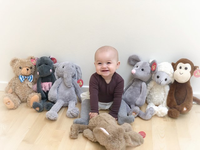 Derudover har vi søde hjertelydsbamser med babys egen hjertelyd - det er hyggeligt og kan måske give ro til babyen,"