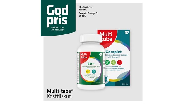 Se hele opslaget på HERNING SVØMMEHALs FacebooksideMultivitaminer fra Multi-tabs - til en ekstra god pris ‼️ Vælg mellem Multi-tabs 50+ Tabletter eller Multi-tabs Complet Omega-3 Tabletter som dit daglige kosttilskud 💪🏽 🗓️ Gælder t.o.m. d. 20. m...