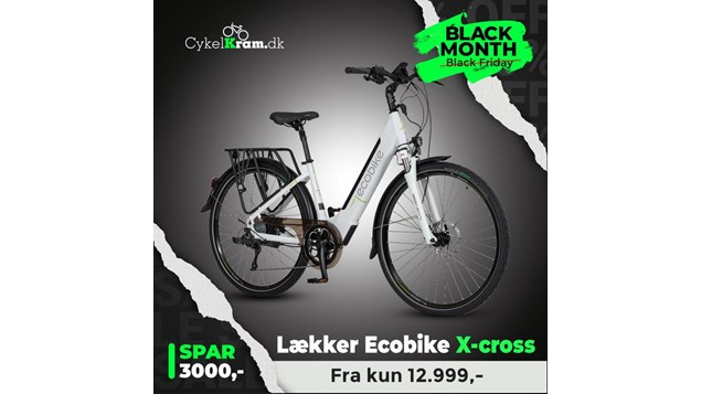 SPAR 3000,- på denne fede Ecobike X-Cross Indbygget batteri i stellet - farve display - What not to like 🖤🖤Black Month🖤🖤stort udvalg af elcykler🖤🖤 SPAR Mange penge hele november måned HUSK HUSK...