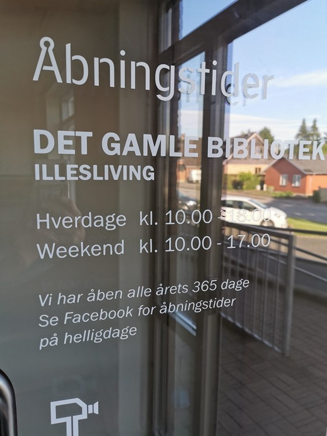 Foto: Facaden på døren ind til Illesliving med åbningtider på // Illesliving