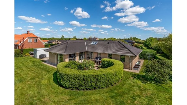 Udenfor finder du en stor ugeneret grund primært udlagt i græs – et fantastisk område til legende børn eller afslappende stunder under åben himmel. Den sydvestvendte terrasse inviterer til lange sommerdage med grillhygge eller stille aftener i solnedgangens skær. Haven kræver minimal vedligeholdelse men tilbyder alligevel rig mulighed for at udfolde grønne fingre.