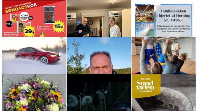 Herning Løve Apotek har udgivet det nye Sund Viden magasin, som kan hentes gratis, og SuperBrugsen Hammerum har søndagstilbud på hakket grise- og kalvekød samt andre varer. Hjertelyd tilbyder en bog om tab og sorg ved graviditetstab til 169 kr., og Dolphin Hotel Herning har offentliggjort deres koncertprogram for 2025.
