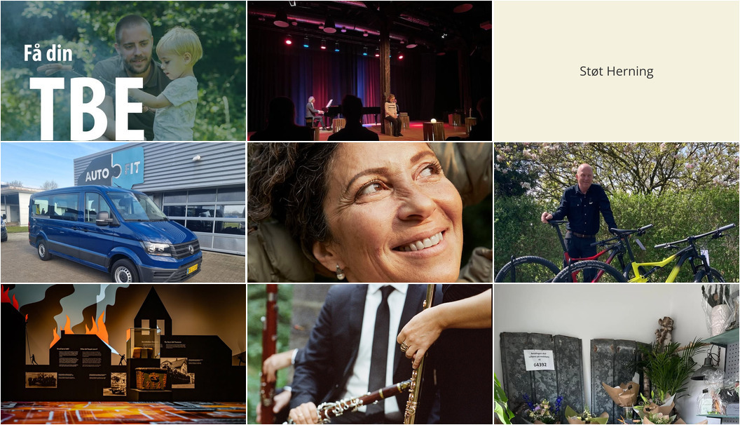 Fredhøj Cykler opfordrer elcyklister til at deltage i en konkurrence om cykeludstyr ved Gazelles testcenter i Søborg. Herning Løve Apotek tilbyder TBE-vaccinationer i samarbejde med Apovac. Vestergades Blomster har fyldt deres selvbetjeningsafdeling op med blomster og planter.
