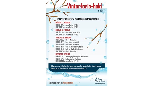 Vinterferien er i gang ❄☃ 🤩 Vores baby- og motionshold kører et specielt program i uge 7. Dette program ser du her. 👶🏻👶🏽 Baby Aqua holder ferie i uge 7. Se hele programmet for vinterferien he...