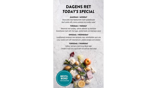 Dagens ret uge 26 😋 Kig forbi og prøv dagens ret til kun 189,- Vores restaurant har i denne uge åben mandag til fredag fra 17-21:30. OBS dagens ret kører kun til og med torsdag 🥔🍳🌽🥬