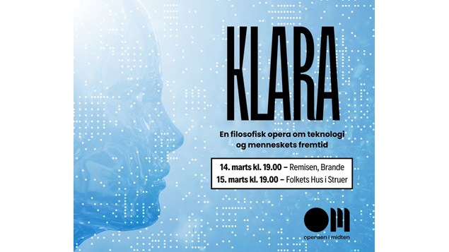 Oplev opera i international klasse, når operaen KLARA gæster Brande og Struer! Det bliver en forestilling med filosofiske overvejelser om menneskets fremtid i en verden med kunstig intelligens - alt sammen i fire korte digte, der synges af den amerikanske operasangerinde Ashley Galvani Bell.