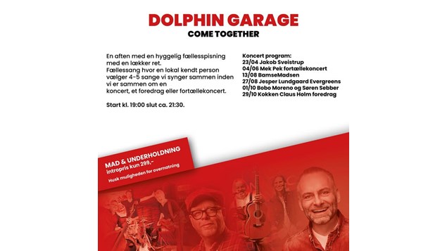 Kom og vær med til en aften fyldt med hygge og gode oplevelser i Dolphin Garage!