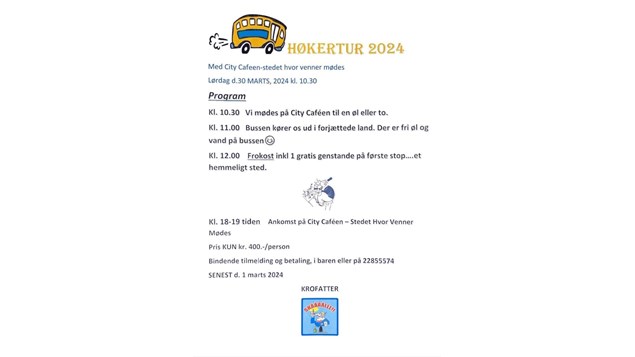 Se hele opslaget på Lagersalg.coms FacebooksideKære venner ❤️ Der er stadig få ledige pladser til vores HØKERTUR lørdag d.30 marts 2024 . Turen går denne gang til …………….. nå ja det er jo en hemmelighed 🤣🤣🤣🤣🤣 SKYND DIG AT FÅ DIG MELDT TIL. Si...