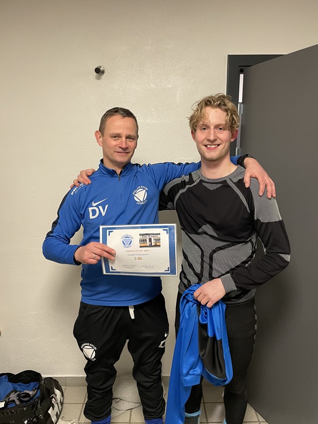 Foto: På billedet ses træner Dennis Vands (t.v.) og kampens spiller Jonas Søgård // Dennis Vands