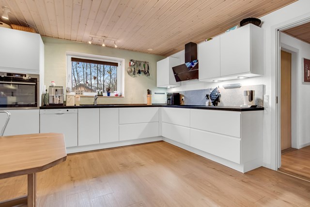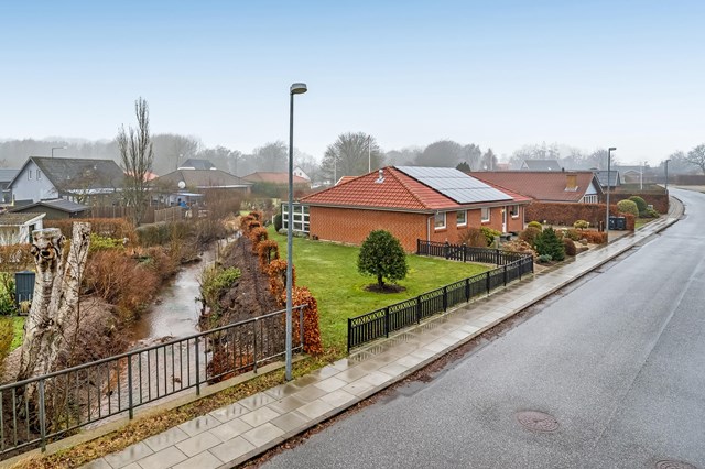 Den store stue har adgang til en højloftet helårsudestue på 31 kvadratmeter, hvor du kan nyde udsigten til haven året rundt. Ejendommen er også udstyret med et solcelleanlæg og en garage på 31 kvadratmeter. Haven er smukt anlagt med solterrasser og et åløb, og du har kort afstand til både indkøb, skole og naturstier. Denne indbydende villa er til salg for 1.398.000 kr.