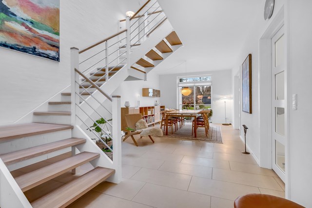 En anden interessant bolig er Haakonsgade 10, 7400 Herning. Denne unikke, indflytningsklare villa ligger i Hernings eftertragtede østlige bydel. Opført i 2010 af murermesteren selv, tilbyder boligen 193 kvadratmeter fordelt på to plan med fokus på kvalitet og æstetik.