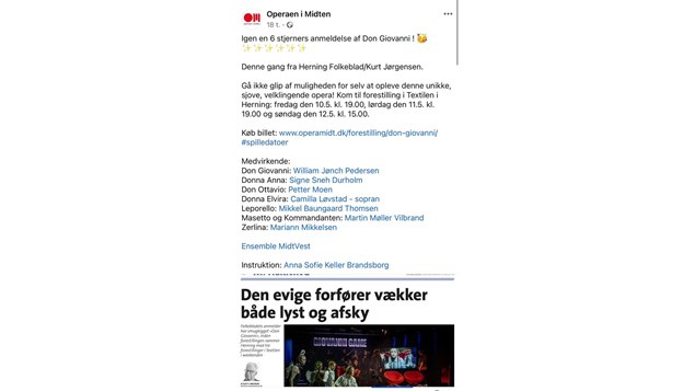 Seks stjerner til Don Giovanni fra Herning Folkeblad: Billetter stadig tilgængelige
