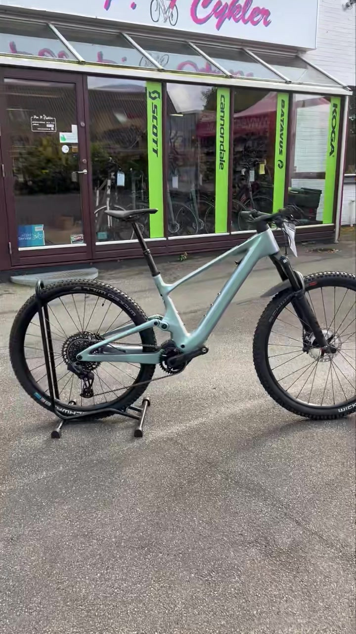 1 styk tilbage af denne lækre Scott “Lumen” E-MTB. Carbonstel, carbonhjul. Elektroniske gear mm. Let model (kun 16,3 kg ) . Kom forbi i butikken og se den/prøv den!