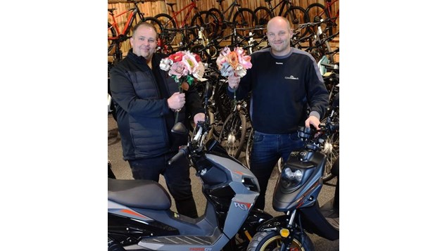 Og køb en flot buket eller en fed scooter, der kun har kørt lige under 700 kilometer gennem Tyskland og Jylland.