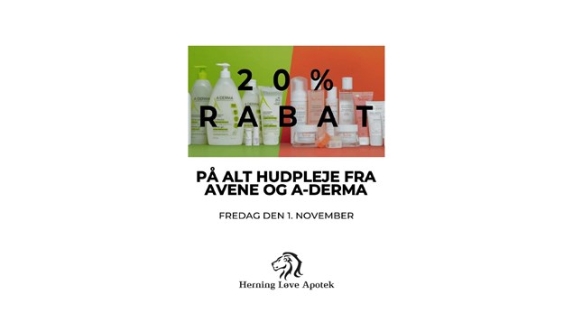 Fredag den 1. november kan du spare 20% på både Avène og A-Derma – men kun hos Herning Løve Apotek!