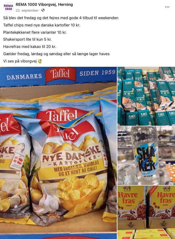 Tilbud, som Rema 1000 Viborgvej tidligere har postet på Facebook // Foto: Rema 1000 Viborgvej Facebook