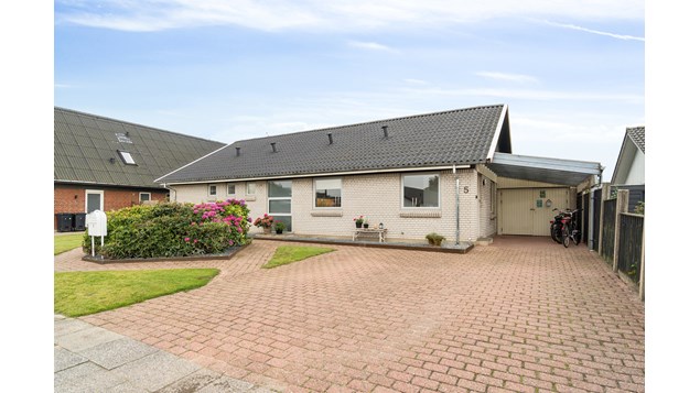Med hele fem værelser fordelt på stueplan og første sal er der rig mulighed for at indrette sig med børneværelser, kontor eller gæsteværelse – en fleksibilitet, der gør boligen oplagt til både børnefamilien og dem med behov for ekstra plads. Hertil kommer to badeværelser, et praktisk bryggers samt gode disponible rum, der gør hverdagen lettere.