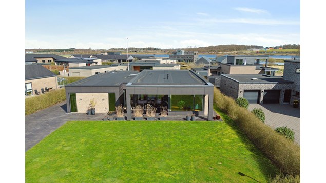 Velkommen til Engholm Søpark 49, hvor boligen allerede udefra står skarpt, og den strømlinede facade med markante vinduer er både æstetisk og genial, da lysindfald tydeligvis er prioriteret. Det vil I også opleve, når I træder ind i hjemmet. Udendørs er det terrasserne på to sider af huset, der løber med opmærksomheden, for det er ikke svært at se sommerdagene udspille sig her, mens børnene leger på græsplænen. Der er også sørget for, at laderen til elbilen kan monteres.
