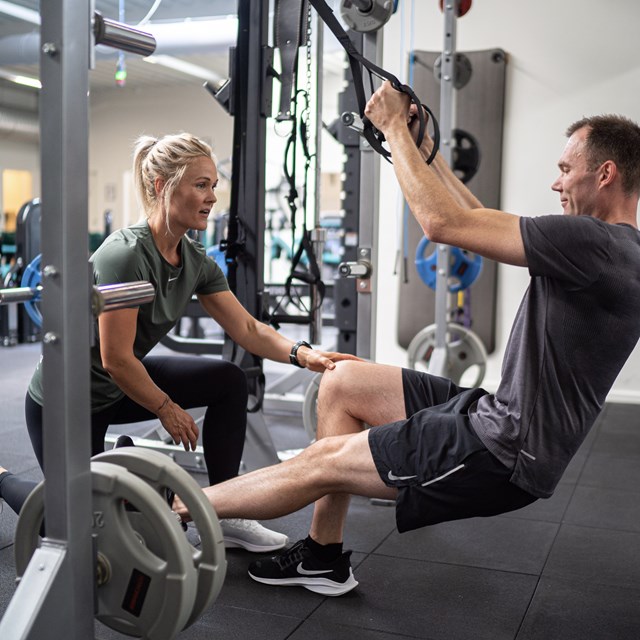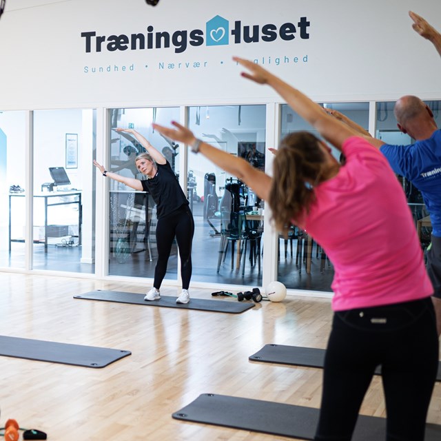 Foto: TræningsHuset // Du kan vælge både rehabilitering og genoptræningshold, hvis du har brug for skånsom træning, hvor fokus ligger på træning med ligesindede som har brug for hensynstagende træning