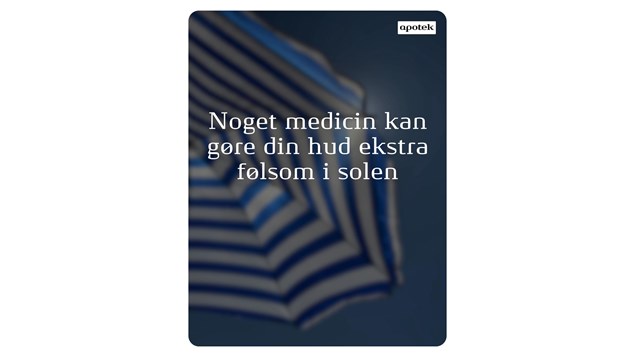 Men bare rolig – du kan stadig nyde sommeren, selv om du tager medicin, der kan gøre dig lysfølsom. Du skal bare beskytte dig ekstra godt mod solens stråler. Det gør du bl.a. ved at undgå middagssolen, være så meget i skyggen som muligt og bruge en solcreme med minimum faktor 30.