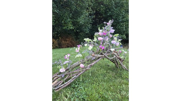 Hvor der er lavet et arrangement af blomster.